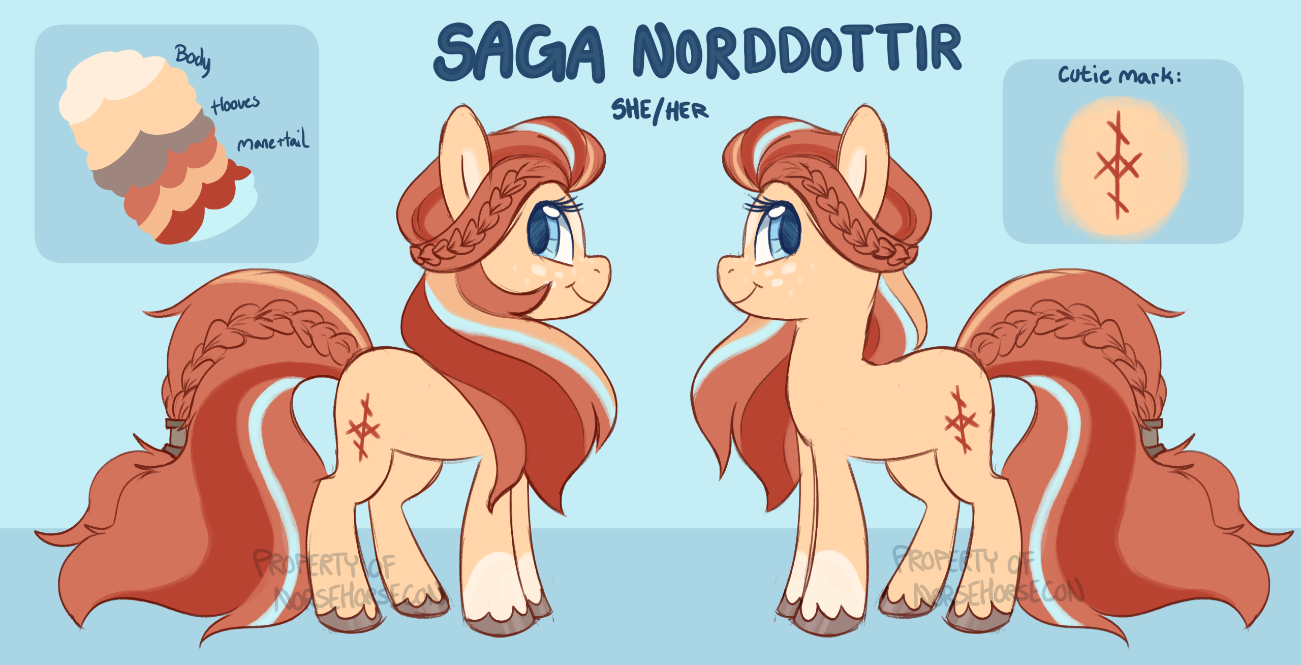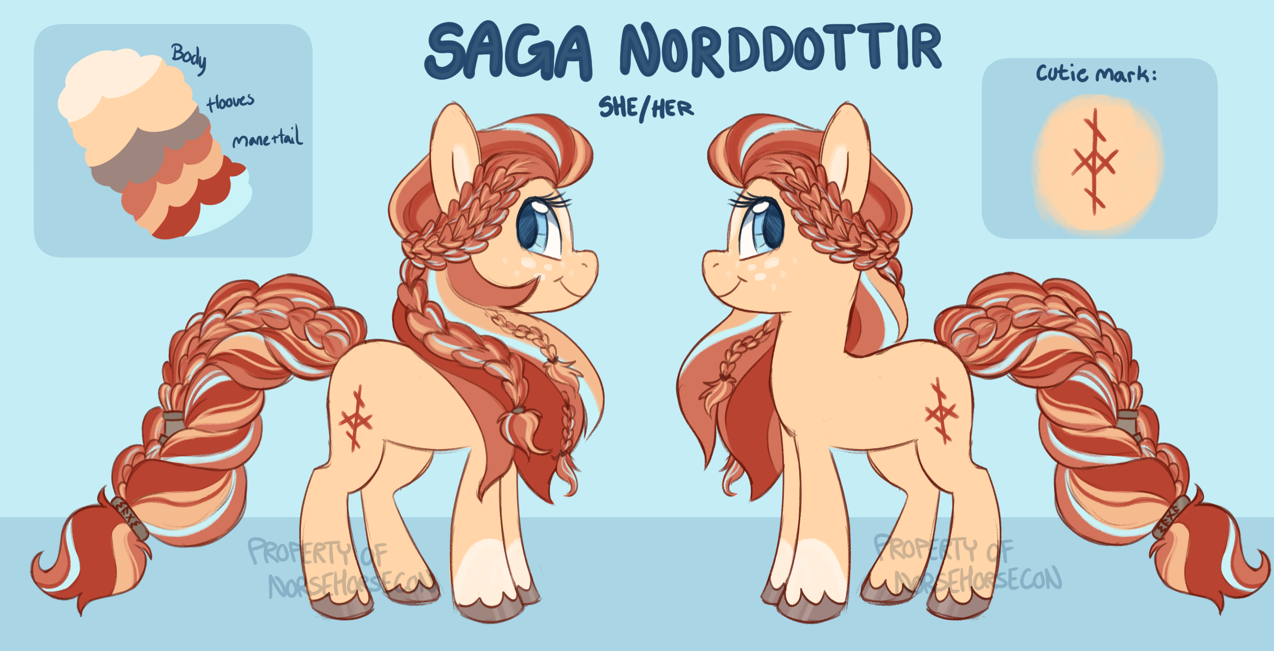 Her design pulls inspiration from many different Norse roots. Norwegian Fjord horses, Viking braids, and red hair, just to name a few!